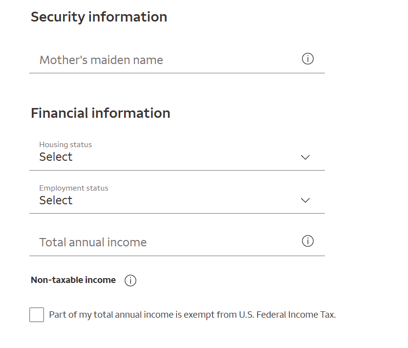 Next, you will reach the sections for Security information and Financial information. This is the part where Wells Fargo learns more about your financial profile. That is why it helps to answer carefully and make sure the information reflects your real situation.