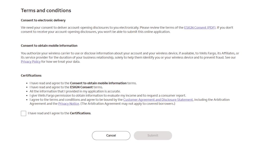 This is also the step where Wells Fargo asks you to confirm that the information you entered is accurate.