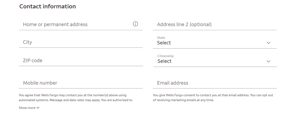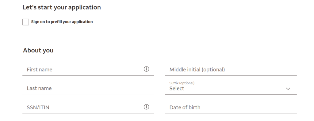 At the top of the form, you may also see the option to sign on to prefill your application. That may help if you already have a Wells Fargo login and want to save time with some information already filled in.